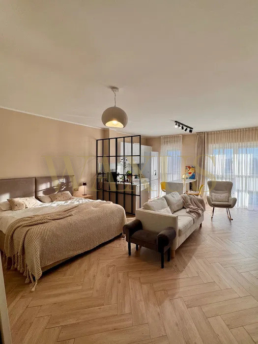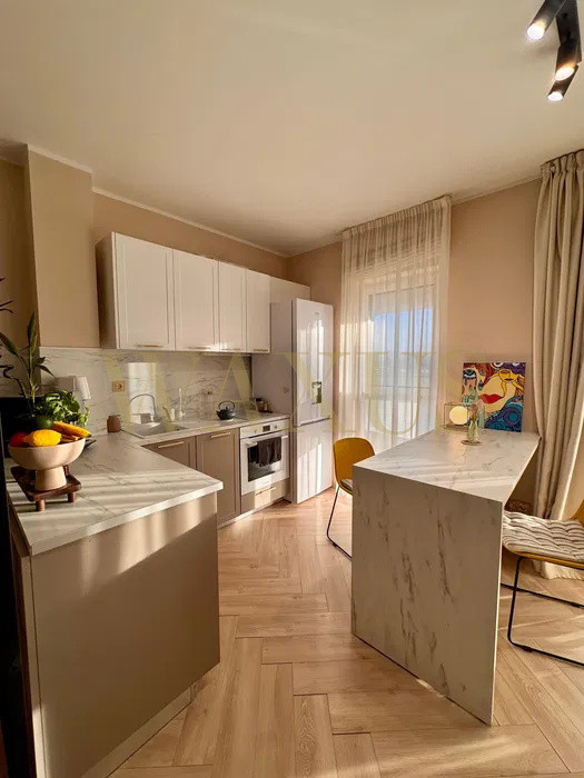 Apartamentul are o suprafață utilă de 41 mp, este situat la parterul unui bloc nou și se vinde complet mobilat și utilat, cu mobilier modern și finisaje de calitate. Bucătăria este dotată cu electrocasnice moderne, iar imobilul beneficiază de centrală pe bloc și încălzire în pardoseală, oferind un nivel ridicat de confort.