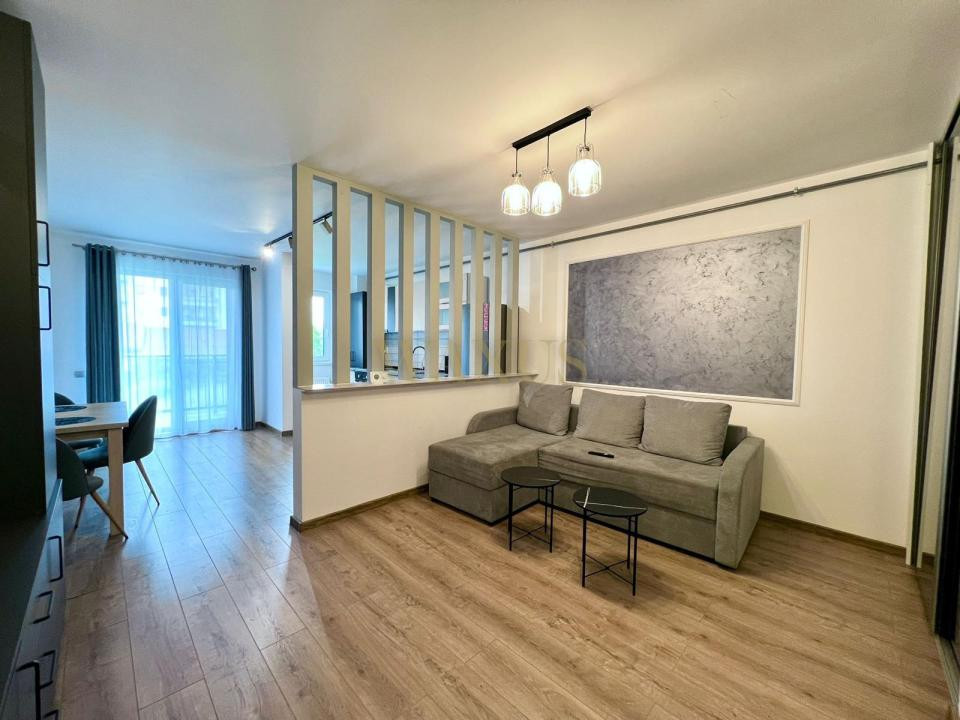 hol , living cu bucatarie open space , dormitor , baie , balcon .