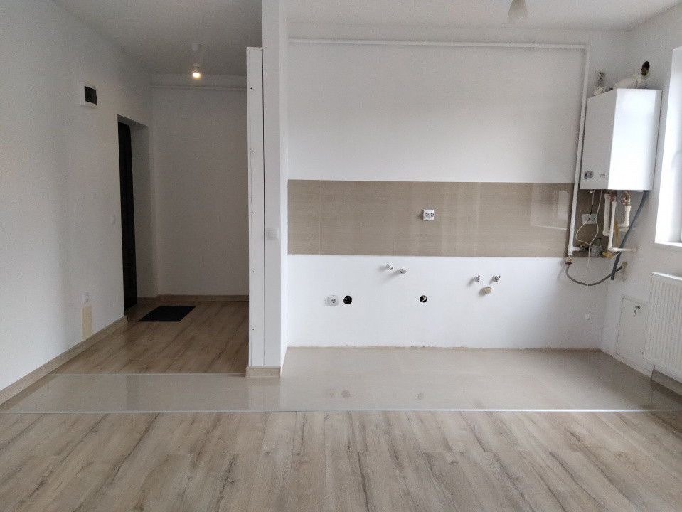 Apartamentul se află la parter inalt și are o suprafață utilă de 39 mp, la care se adaugă un balcon de 3,65 mp. Este finisat și dispune de centrală termică proprie, parchet, ușă metalică la intrare, geamuri termopan și o baie spațioasă cu geam.