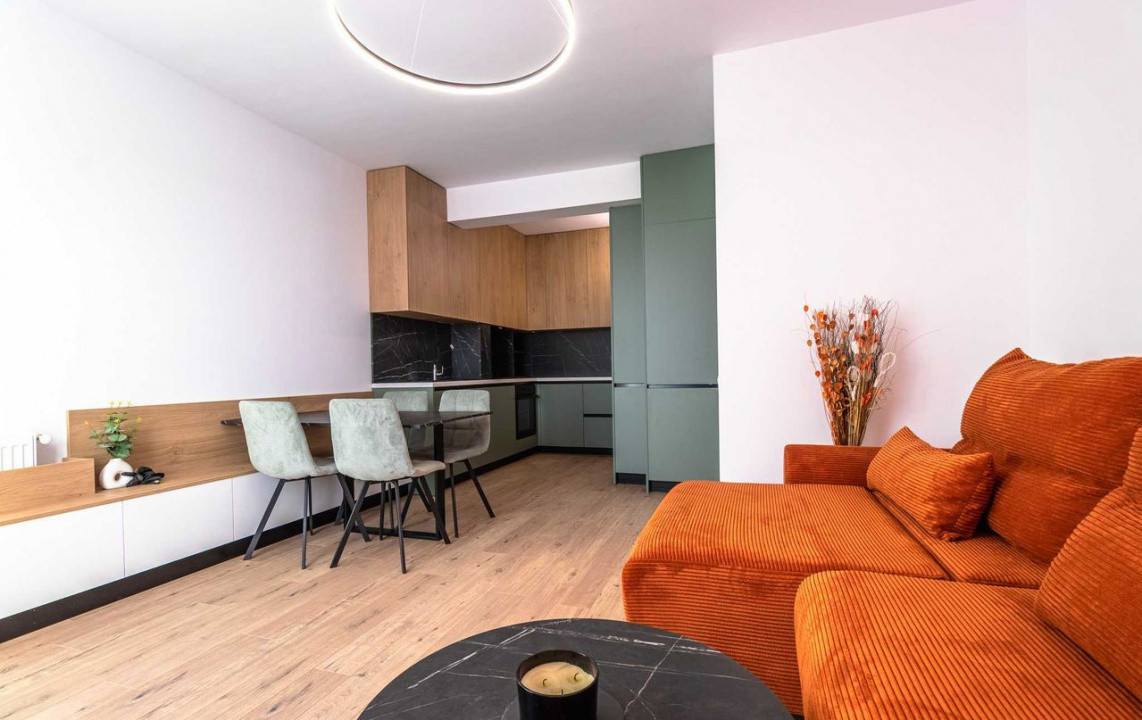 Compartimentat prin: 1 living+bucatarie open-space, 1 dormitor, 1 hol, 1 baie si 1 balcon.