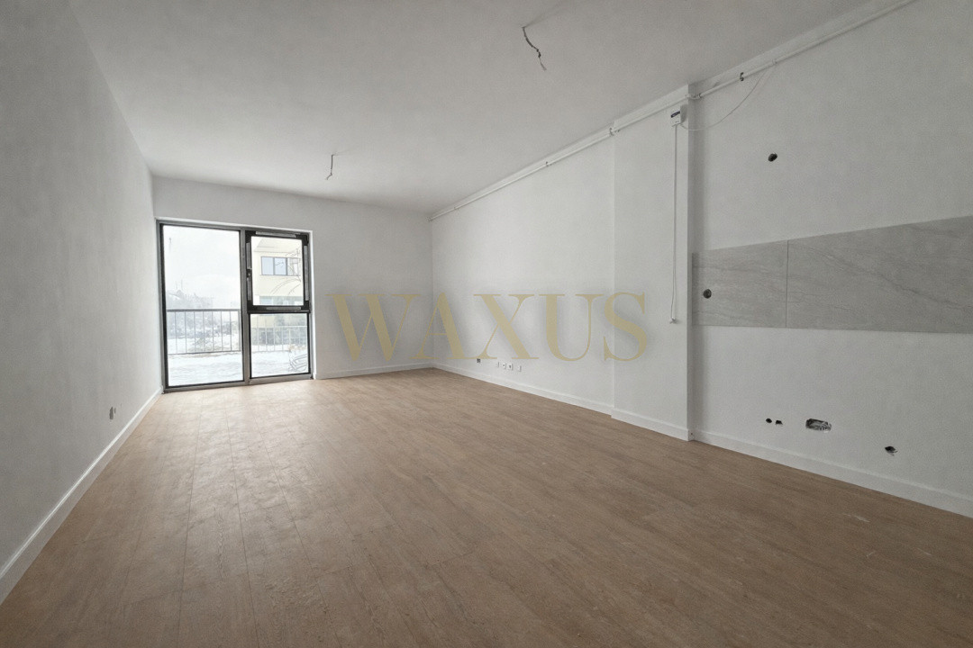 1 Hol generos, 1 Living + Bucatarie open-space, 1 Dormitor, 1 baie si 1 balcon de 4,72mp.