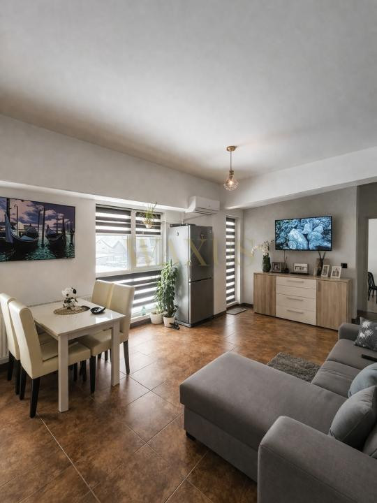 Locuința se vinde complet mobilată și utilată, fiind dotată cu centrală termică proprie, aer condiționat, aragaz, cuptor, mașină de spălat rufe și mașină de spălat vase.