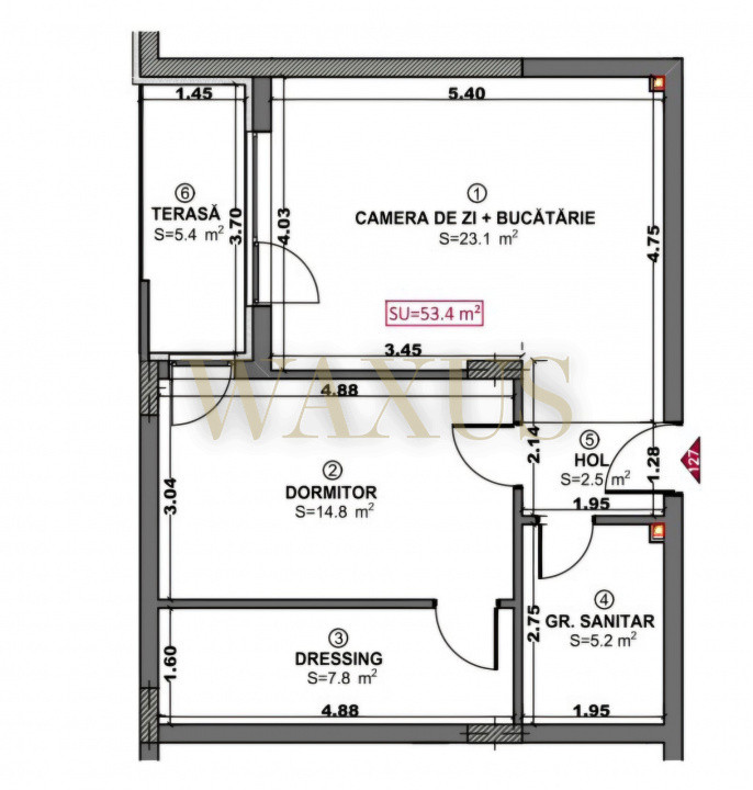 Apartamentul este amplasat la etajul 6 din 6 și are o suprafață utilă de 54 mp, la care se adaugă o logie de 6 mp. Este orientat nord-vest și nu a fost locuit niciodată.
