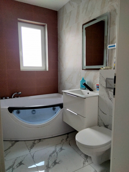 2 băi: Una echipată cu cabină de duș și cealaltă cu cadă cu hidromasaj, pentru un plus de confort.