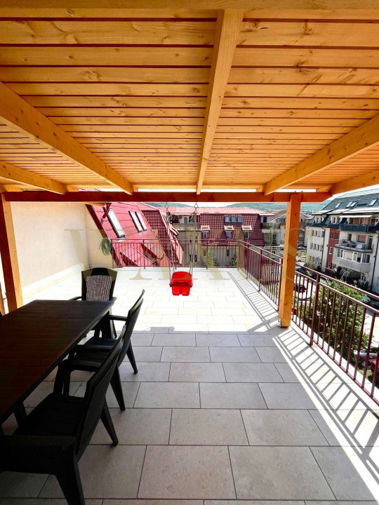 Compartimentare: living cu bucătărie open-space, 2 dormitoare, baie cu cadă, balcon la unul dintre dormitoare, terasă de 35 mp.