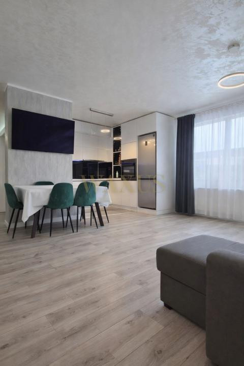 Apartamentul se vinde complet mobilat și utilat, fiind pregătit pentru mutare imediată. Dispune de aer condiționat, mașină de spălat vase, mașină de spălat rufe, plită electrică, frigider și cuptor, oferind tot confortul necesar.