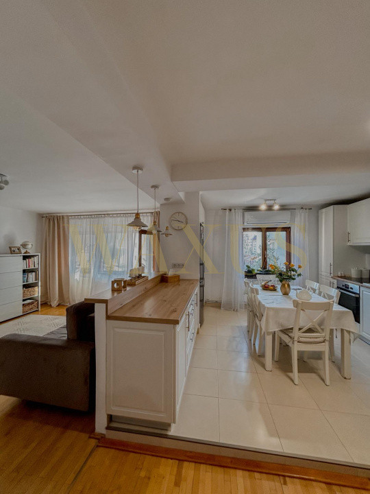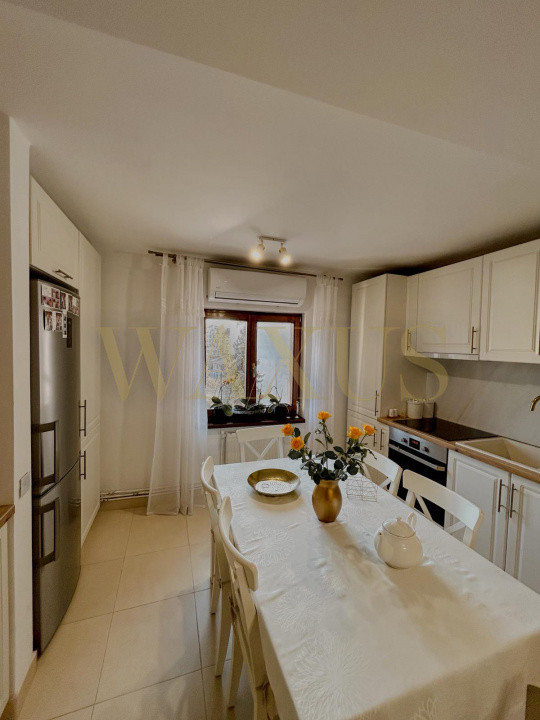 Finisajele îmbină stilul clasic cu elemente moderne: parchet din lemn masiv de carpen, uși din lemn masiv de stejar, bucătărie complet utilată (mașină de spălat vase, plită, cuptor electric, hotă, combină frigorifică), aer condiționat și mobilier modern.