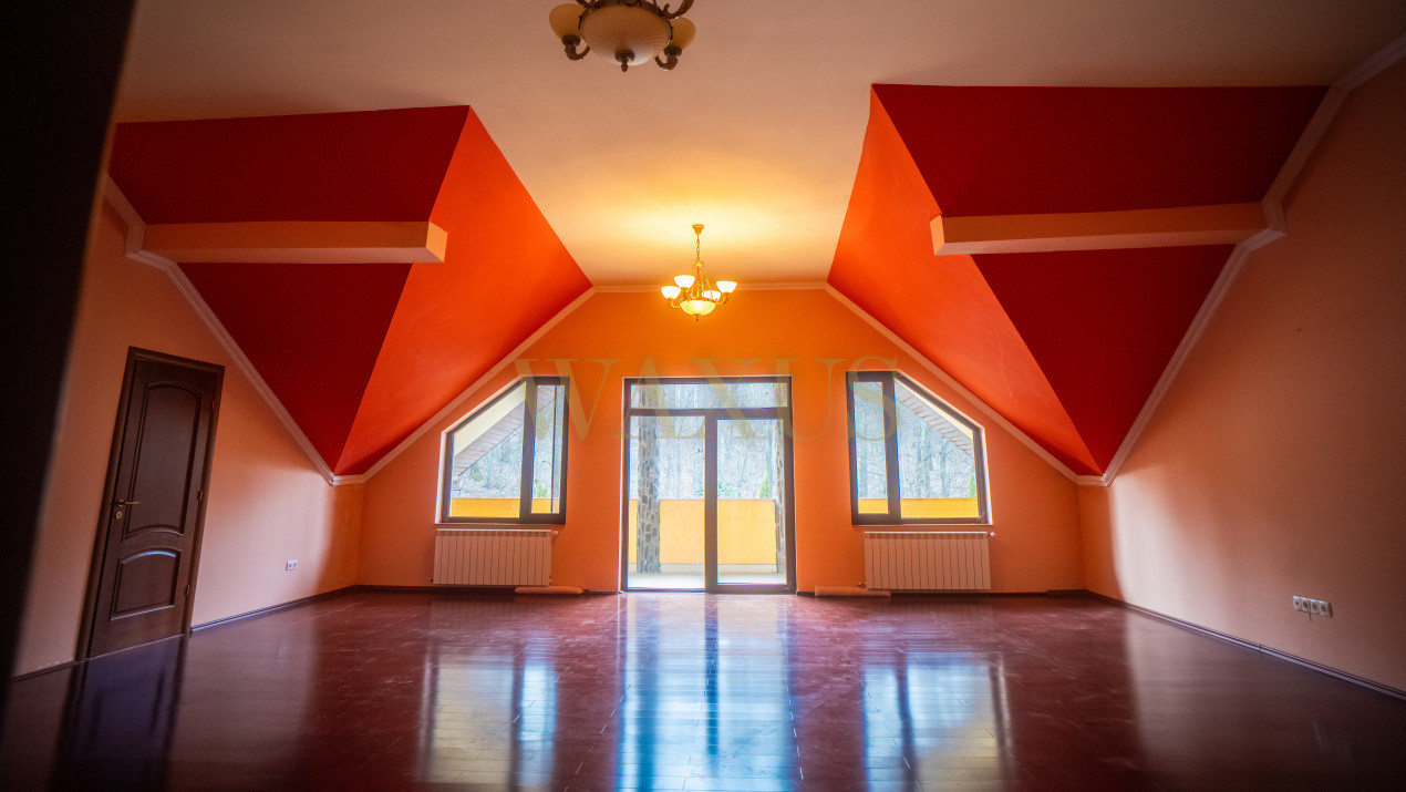 Această vilă impunătoare, dispusă pe demisol, parter și două etaje, oferă un total de 14 camere, dintre care 7 dormitoare, fiecare cu baie proprie, fiind ideală atât pentru reședință privată de lux, cât și pentru investiție – pensiune, boutique hotel sau retreat exclusivist.