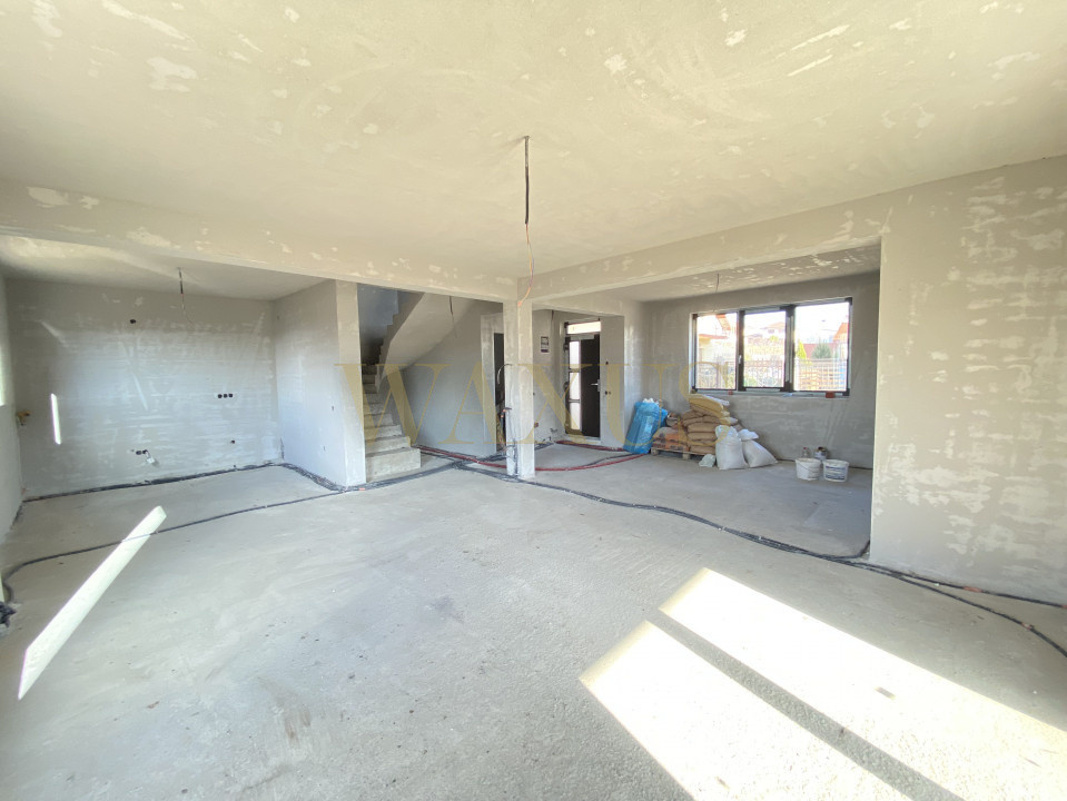 Predarea casei va fi finisata la exterior si semifinisata la interior (un strat de glet, instalatii pe pozitii, incalzire in pardoseala, sapa turnata, centrala,)