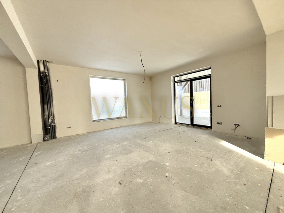 Suprafața utilă este de 120 mp, la care se adaugă două terase și un balcon de 25 mp, iar terenul total măsoară 317 mp.