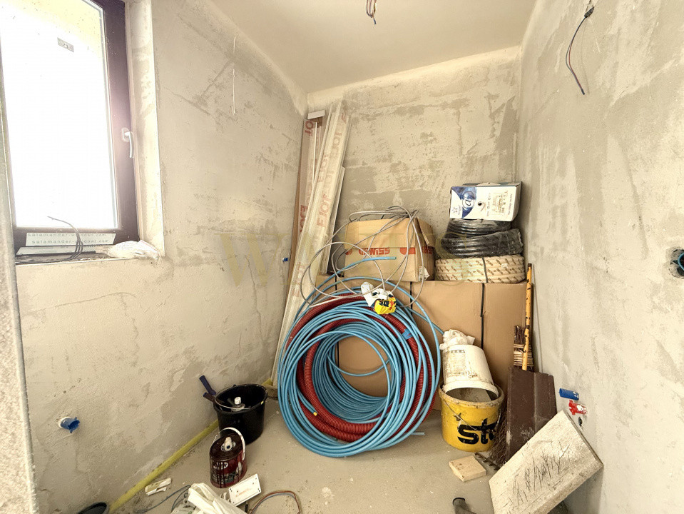 Casa se predă finisată la exterior și semifinisată la interior, incluzând: strat de glet, instalații pe poziții, încălzire în pardoseală, sapa turnată și centrală termică.