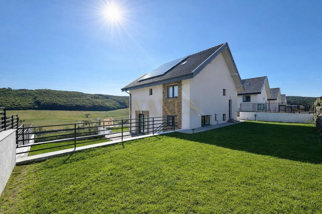Casa este construită cu materiale premium și dotări moderne: încălzire în pardoseală, tâmplărie Salamander Blue Evolution cu 3 sticle și 7 camere, izolație de 15 cm, vată minerală de 20 cm în pod, aer condiționat multisplit Ariston, precum și panouri fotovoltaice, oferind eficiență energetică clasa A și orientare sudică.