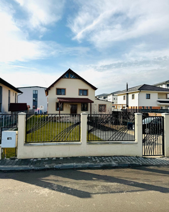 Curtea este amenajată cu gazon , loc de joacă pentru copii plus spațiu betonat la intrare în curte pentru a putea parca lejer 2:3 mașini și să nu uităm de zona BIO unde sunt plantați : meri, peri, caiși, cireși și piersici