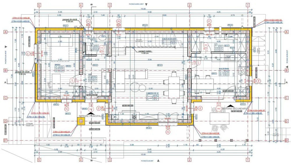 -Parter – living spațios, bucătărie separată, birou, baie, cameră tehnică, hol;