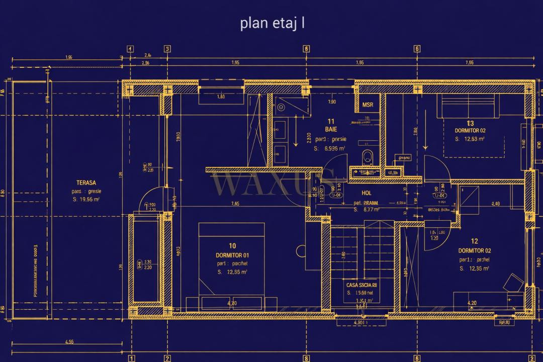 La etaj sunt 3 dormitoare, baie, dressing și terasă mare.