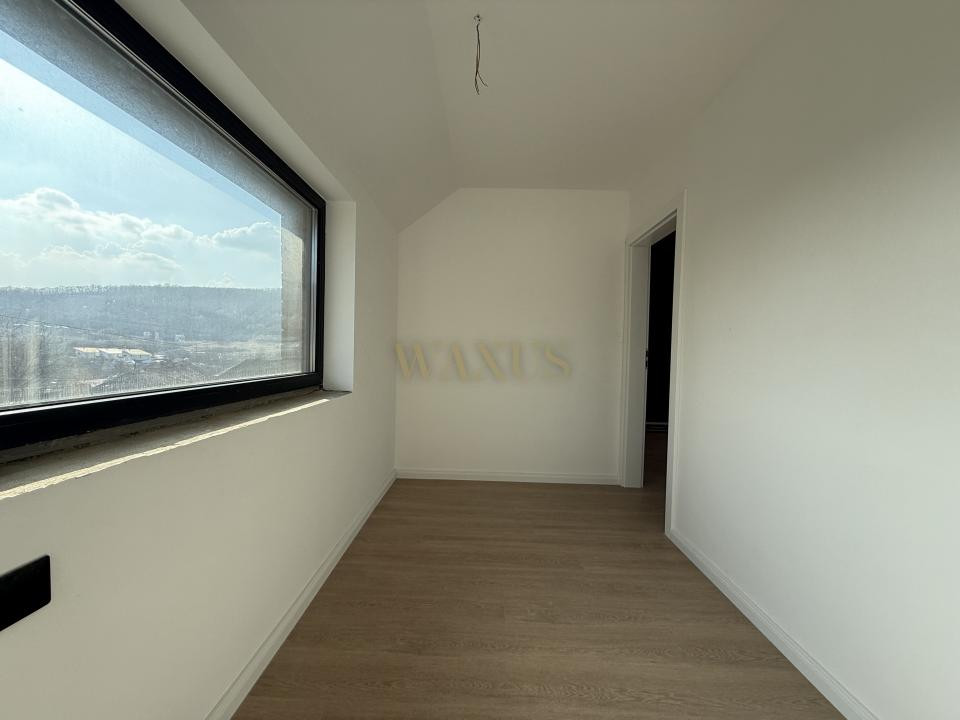 La parter se află un hol generos, living cu bucătărie open-space și ieșire pe o terasă de aproximativ 50 mp, un dormitor și o baie. La etaj se regăsesc casa scării, un hol, o baie de serviciu, două dormitoare dintre care unul are posibilitatea de extindere în zona de pod și un dormitor matrimonial cu dressing și baie proprie.