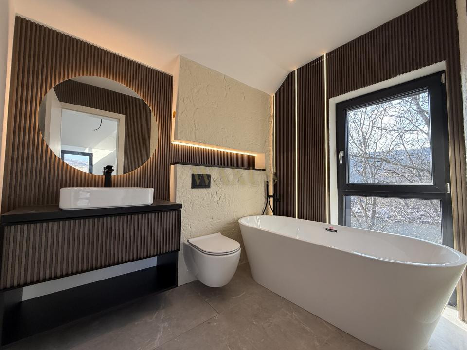 Casa beneficiază de izolație exterioară cu polistiren de 15 cm si fatada ventilata, acoperiș izolat cu două straturi de vată bazaltică și minerală și ferestre termopan cu profil Rehau și sistem cu 6 camere Salamander, oferind un nivel ridicat de confort termic și fonic. Locuința se predă la stadiul de finisat.