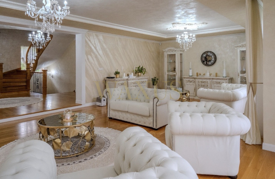 • Etaj: 3 dormitoare spațioase, bibliotecă, dressing, baie, 2 terase, pod.