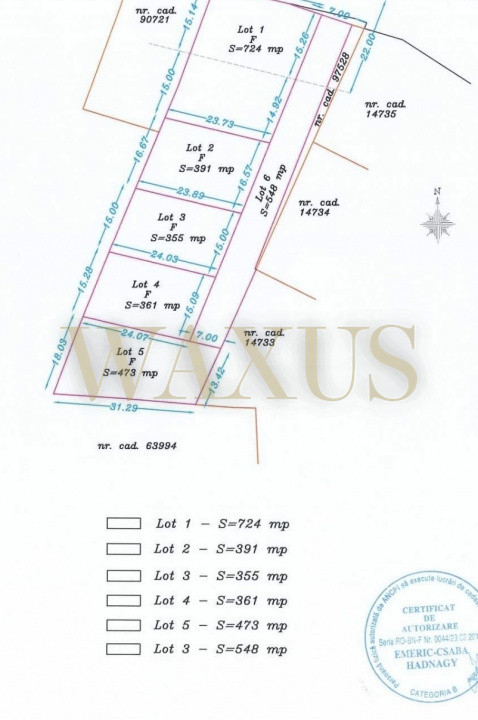 Waxus Imobiliare , vă oferă spre vânzare 5 parcele .